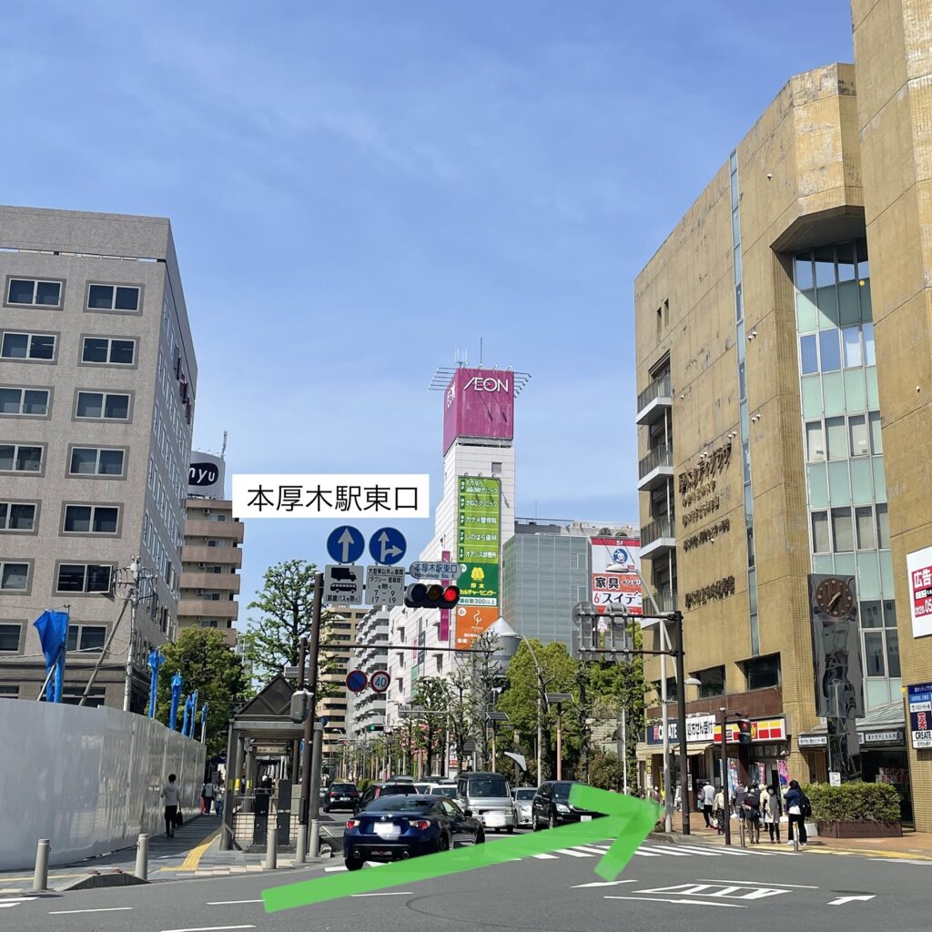 本厚木駅東口を出て、イオン方向へ(スクールまで徒歩7分ほど)